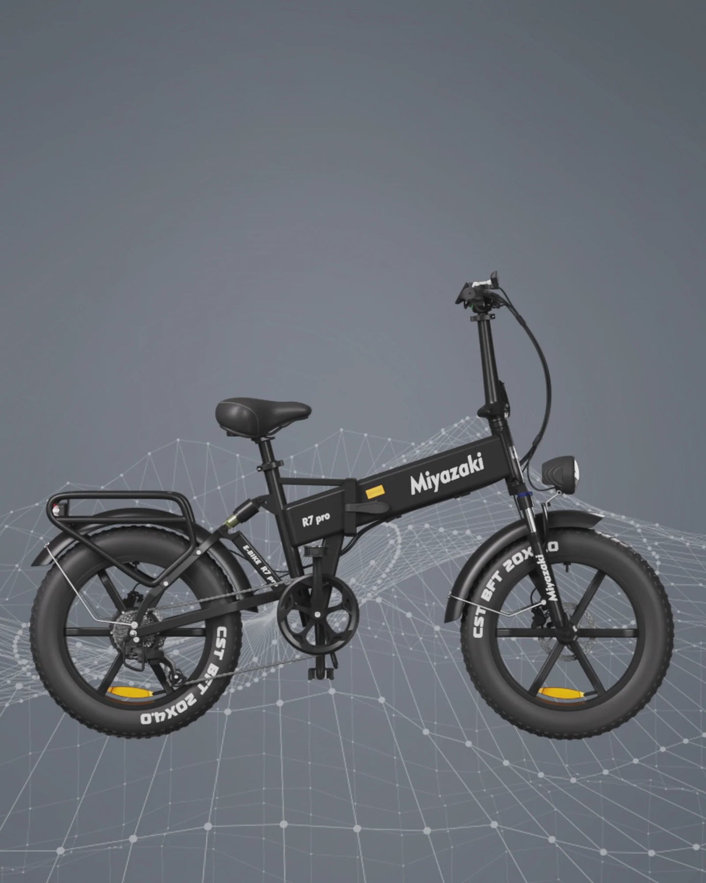 Miyazaki R7 Pro è una versatile bici elettrica pieghevole, dotata di un motore brushless da 250W e di una batteria rimovibile da 48 V 18Ah Samsung.